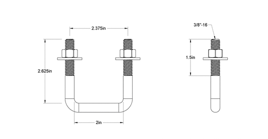 Pack of 4 - Sq U-Bolt Zinc-Plated Steel, 3/8"-16 Thread, 2" Inside W, 2-5/8" H